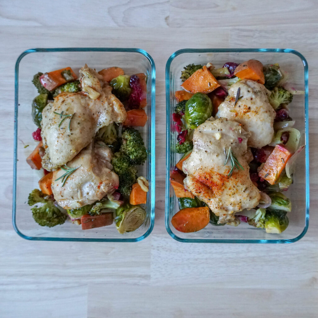 El pollo es uno de los favoritos para las recetas en sartén, pero los muslos de pollo son candidatos especialmente buenos. Son más húmedos y sabrosos y saben muy bien con brócoli, coles de Bruselas y arándanos.